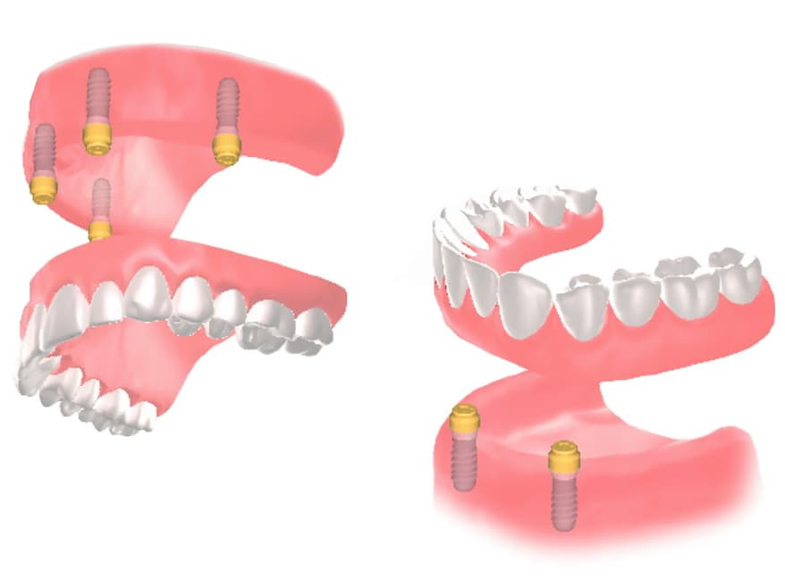 特に総入れ歯の方や、多数の歯を失った方において、すべての歯をインプラントで治療するよりも費用を抑えながら、しっかりと噛める機能を回復することができる優れた治療オプションです。