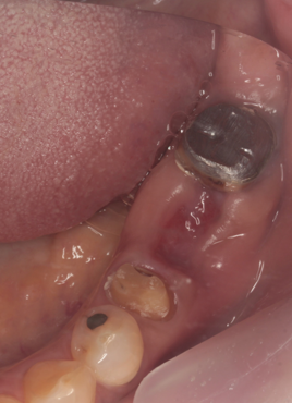 通常抜歯後、顎の骨は吸収する。後のインプラント治療が不利になる。抜歯前の疾患により歯を支える骨を失っており、即時埋入が難しい場合に行っている。