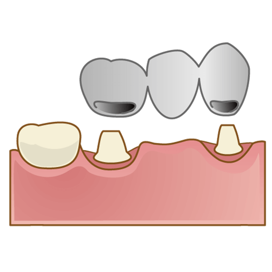 失った歯の両隣の歯を支柱として、連結した人工歯を装着する治療法です。セラミック素材を使用することで、天然歯と見分けのつかない自然な仕上がりを実現できます。取り外し式の入れ歯と異なり、固定式のため安定感があります。